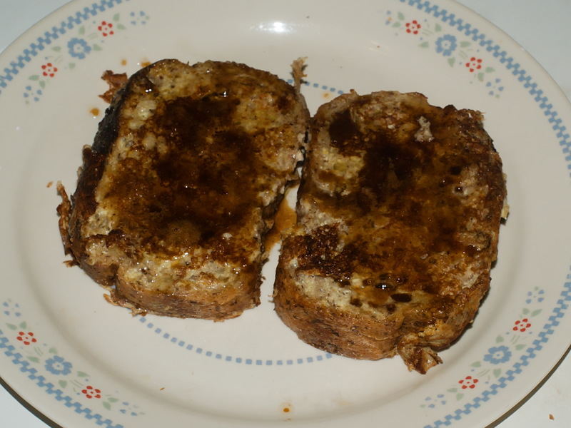 It's known as pain perdu in New Orleans and other civilized locales, as french toast everywhere else. The cultural historians at Townsends tell us that it has been made to essentially the same recipe since the days of the Roman Empire. While modern Americans tend to eat it with pancake syrup, Colonials of the 18th Century commonly used a sauce made of equal parts butter, sugar and sherry. I tried it and it's pretty good.