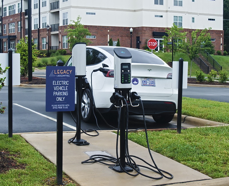 A lot of new residential apartment buildings have gone up in Winston-Salem in the past ten years. To differentiate themselves and warrant top rental dollars, they have to offer amenities. Many have pools, balconies, ample parking and well-kept grounds. One thing that they don't all have is EV charging stations. The new complex on Cloverdale Hill does, and with the number of EVs I see driving around Ardmore, I expect it is a popular amenity. Legacy at Ardmore is the closest new apartment complex to Baptist Hospital with its well-paid and sophisticated labor force, the type of people who are adopting EVs at an increasing rate.