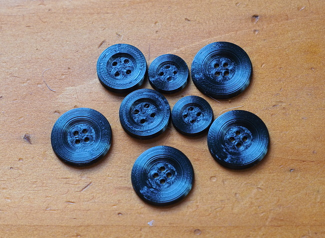 Buttons. A whole lot easier to print a button than to drive to Michael's or Walmart. In fact, for people who sew and work on sewing machines I can see a lot of good applications. Bag makers use a fair amount of hardware, snaps, strap adjusters, hooks and such. Some day digital patterns will come with 3d printer files so all those things can be made on the spot. Old fashioned machines that used cams for fancy stitches commonly are missing a few, and a viable business could be developed around 3d printing replacements. For that matter, custom cams could be crafted to produce a whole new range of stitches. The last of the great Italian-made Necchi machines that had the one nylon gear that gave out and couldn't be replaced could now be brought back to life.