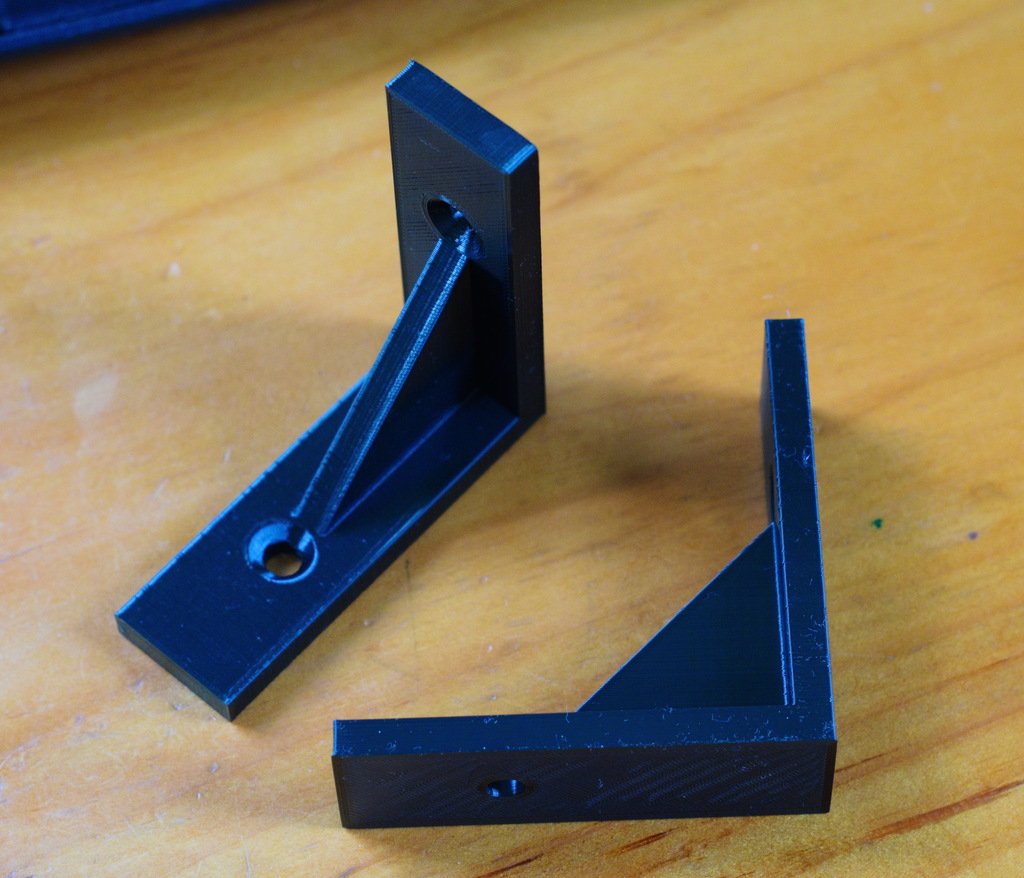 Brackets. Totally easy to customize for size and strength. Make a set of brackets to fit your space, not force the space to accomodate the available bracket. For that matter, print the shelf too. No need to drive to Home Depot.